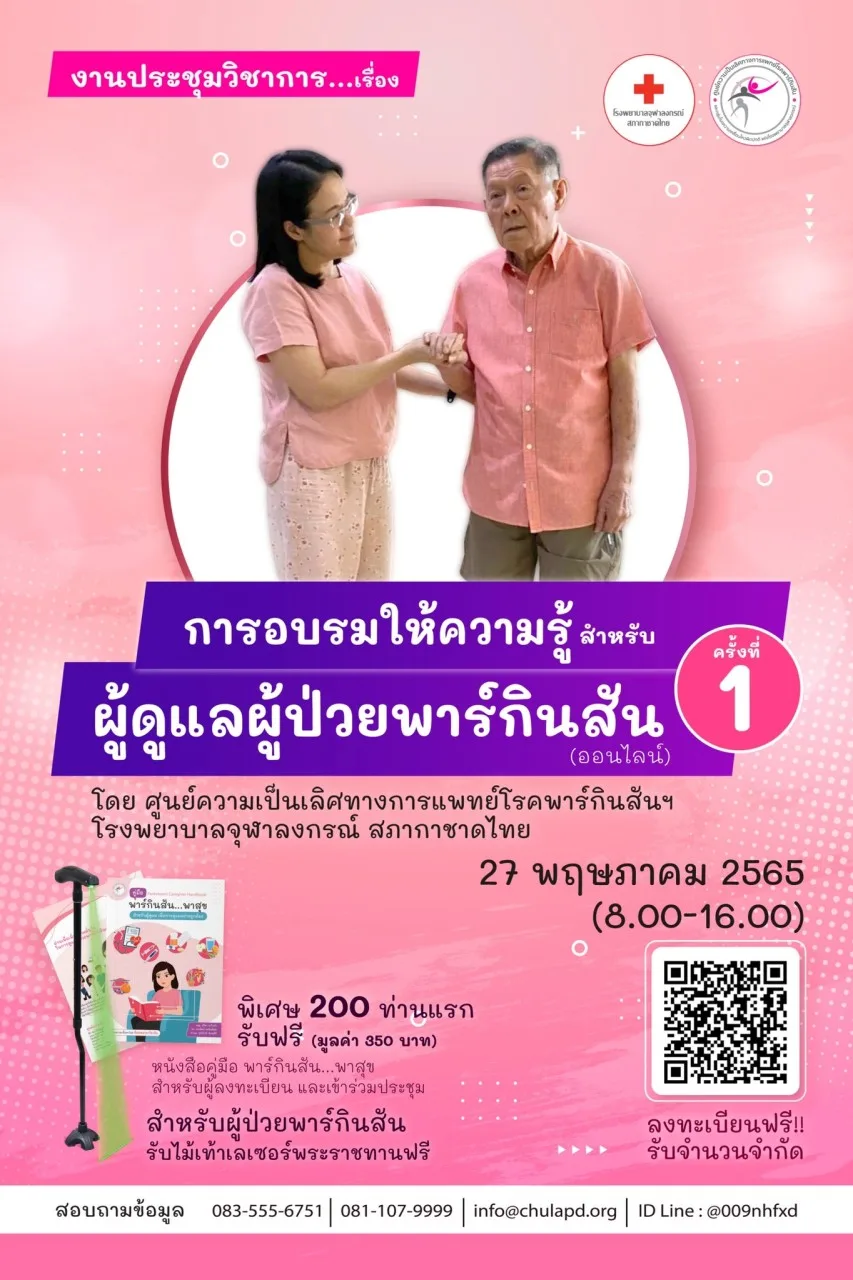 - ขอเชิญชวนผู้ดูแลและผู้ป่วยพาร์กินสันทุกท่าน เข้าร่วมการอบรมให้ความรู้ สำหรับผู้ดูแลผู้ป่วยพาร์กินสัน ครั้งที่ 1