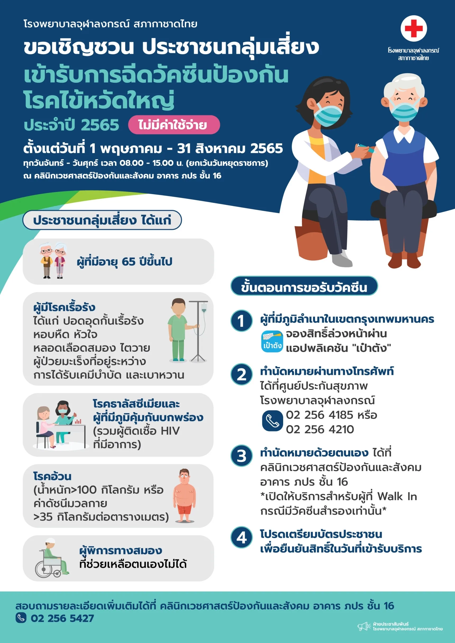 ขอเชิญชวน ประชาชนกลุ่มเสี่ยง เข้ารับการฉีดวัคซีนป้องกัน โรคไข้หวัดใหญ่ ประจำปี 2565