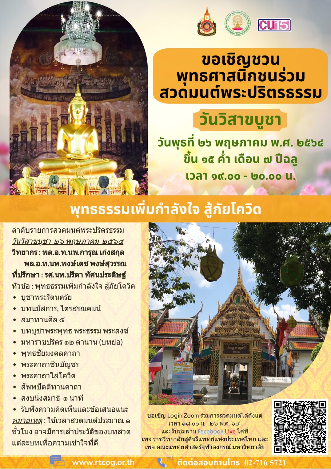 ขอเชิญชวน พุทธศาสนิกชนร่วม สวดมนต์พระปริตรธรรม วันวิสาขบูชา