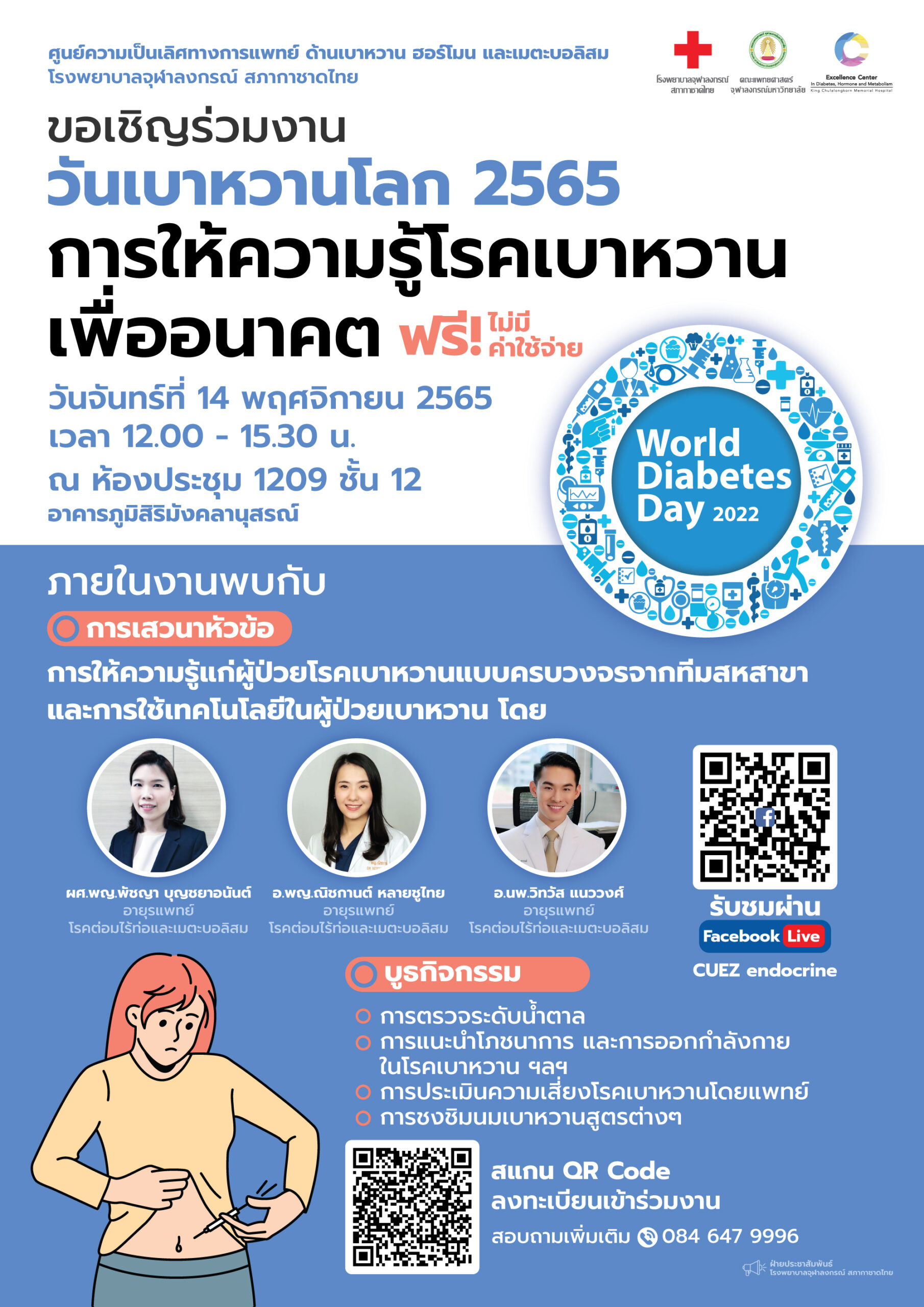 ขอเชิญร่วมงาน วันเบาหวานโลก 2565 การให้ความรู้โรคเบาหวานเพื่ออนาคต