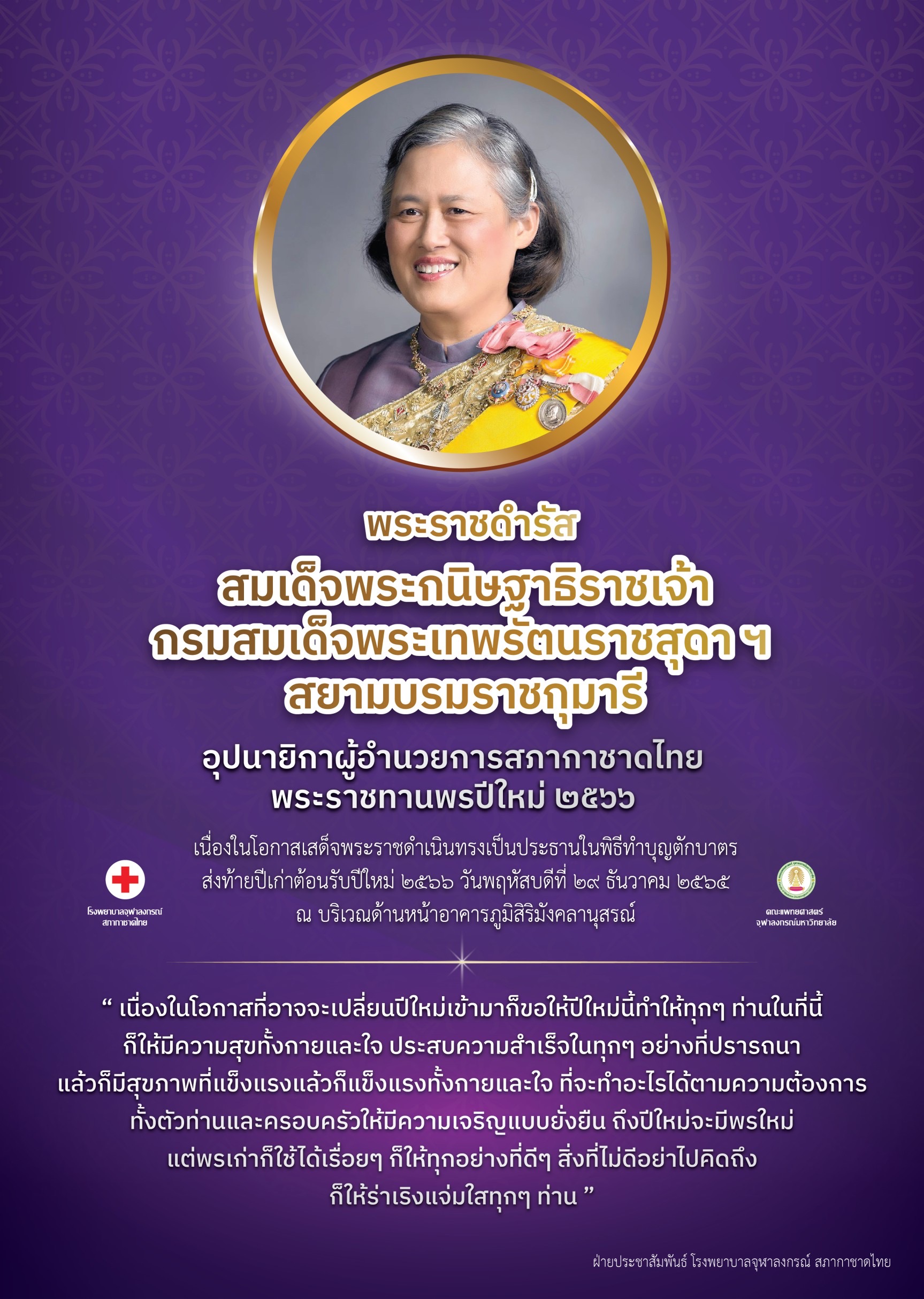 พระราชดำรัส สมเด็จพระกนิษฐาธิราชเจ้า กรมสมเด็จพระเทพร้ตนราชสุดา ฯ สยามบรมราชกุมารี อุปนายิกาผู้อำนวยการสภากาชาดไทย พระราชทานพรปีใหม่ ๒๕๖๖