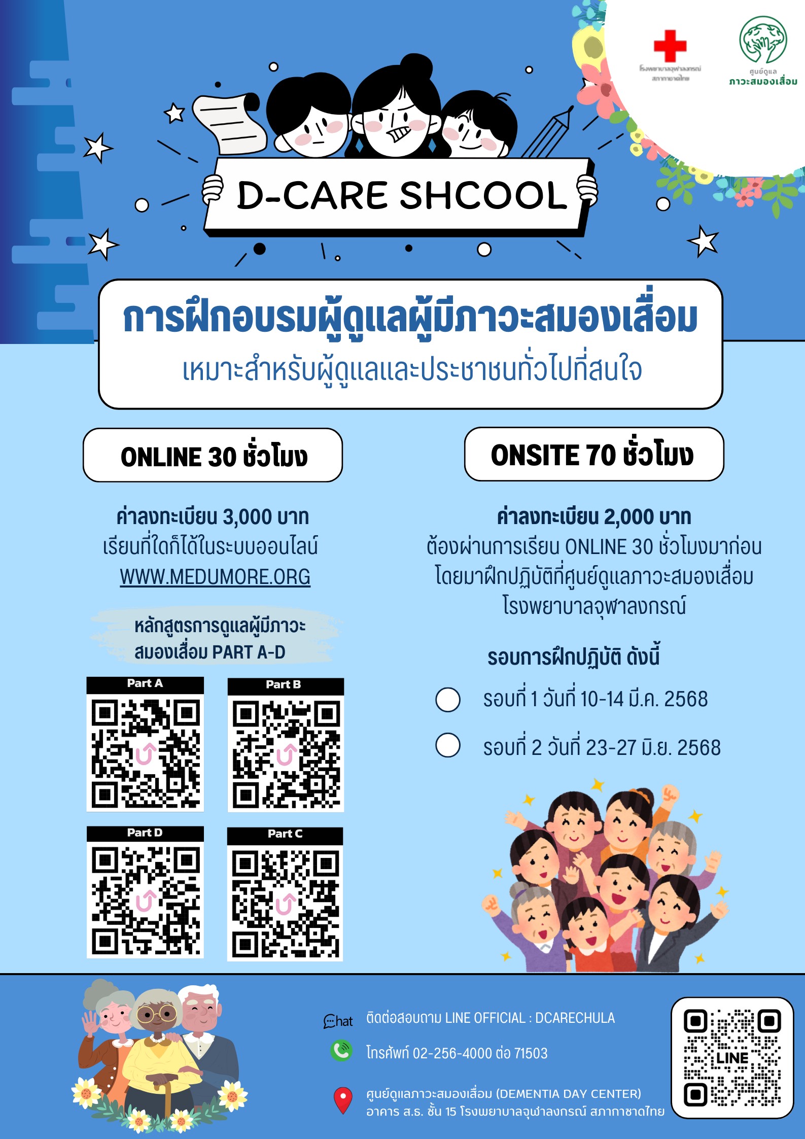 🌸ศูนย์ดูแลภาวะสมองเสื่อม โรงพยาบาลจุฬาลงกรณ์ ขอเชิญผู้สนใจเข้าร่วมการฝึกอบรมผู้ดูแลผู้มีภาวะสมองเสื่อม (D-CARE SCHOOL) ประจำปี 2568 💜เพื่อเพิ่มทักษะการดูแลผู้มีภาวะสมองเสื่อมอย่างมีประสิทธิภาพและได้มาตรฐาน รวมถึงสร้างเจตคติที่ดีในด้านการดูแลผู้มีภาวะสมองเสื่อมอย่างมืออาชีพ