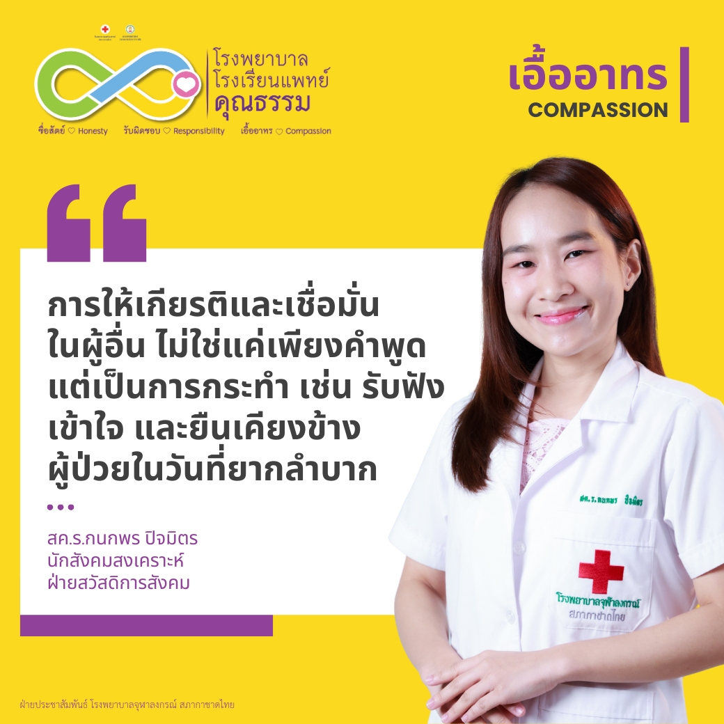 ในวันที่ผู้ป่วยและครอบครัวต้องเผชิญกับความทุกข์ใจ นักสังคมสงเคราะห์คือผู้ที่รับฟัง เข้าใจ และพร้อมยืนเคียงข้างเพื่อให้ทุกคนก้าวผ่านช่วงเวลาที่ยากที่สุดไปให้ได้