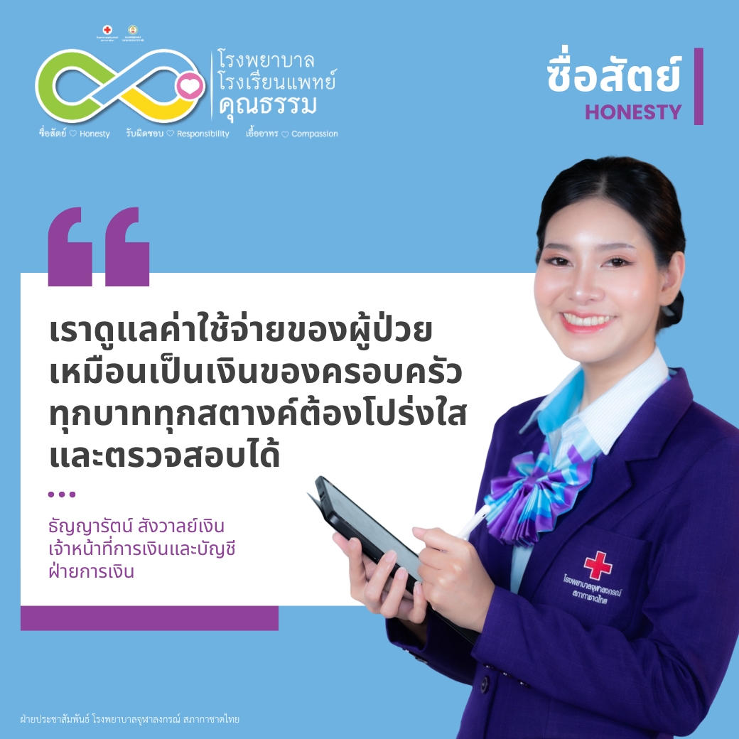 งานด้านการเงินไม่ใช่เพียงตัวเลข แต่คือความไว้วางใจ…เพราะทุกค่าใช้จ่ายของผู้ป่วย เราต้องดูแลเหมือนเป็นเงินของครอบครัวเราเอง ทุกบาททุกสตางค์ต้องโปร่งใสและตรวจสอบได้