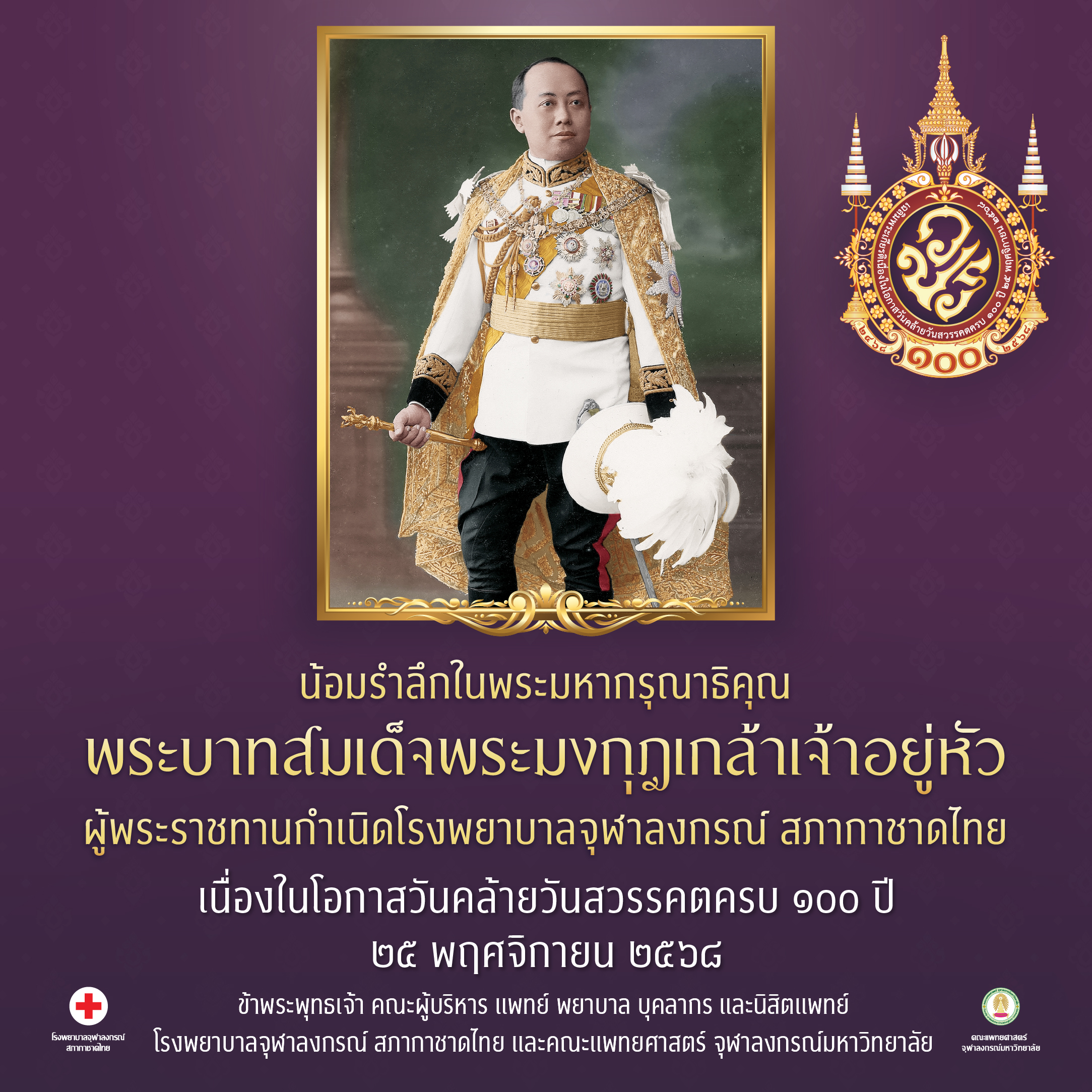 น้อมรำลึกในพระมหากรุณาธิคุณพระบาทสมเด็จพระมงกุฎเกล้าเจ้าอยู่หัว ผู้พระราชทานกำเนิดโรงพยาบาลจุฬาลงกรณ์ สกากาชาชาดไทย เนื่องในโอกาสวันคล้ายวันสวรรรคตครบ ๑๐๐ ปี