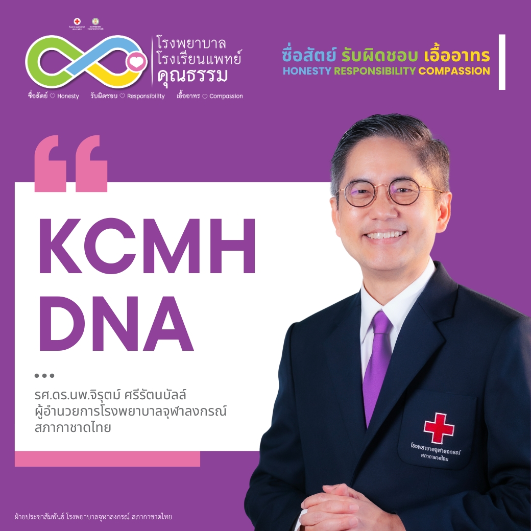 “ซื่อสัตย์ รับผิดชอบ เอื้ออาทร” — DNA ของพวกเราชาวโรงพยาบาลจุฬาลงกรณ์ ที่ยึดมั่นและถ่ายทอดสู่การปฏิบัติงาน ด้วยหัวใจที่ซื่อสัตย์ รับผิดชอบในหน้าที่ และเอื้ออาทรต่อผู้รับบริการ มุ่งมั่นมอบการรักษาพยาบาลที่ดีที่สุด เพราะทุกรอยยิ้มของผู้รับบริการ มีคุณค่าสำหรับเราเสมอ