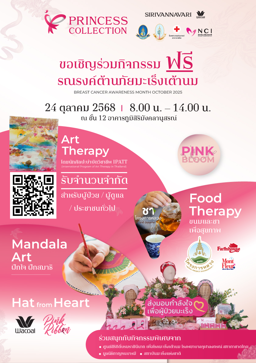 ห้ามพลาด! สนุกกับกิจกรรมให้ความรู้ด้านสุขภาพและป้องกันโรคมะเร็งเต้านม และของระลึก จากทั้ง 3 มูลนิธิ ศูนย์สิริกิติ์บรมราชินีนาถ เพื่อโรคมะเร็งเต้านม โรงพยาบาลจุฬาลงกรณ์ สภากาชาดไทย มูลนิธิกาญจนบารมี และสถาบันมะเร็งแห่งชาติ