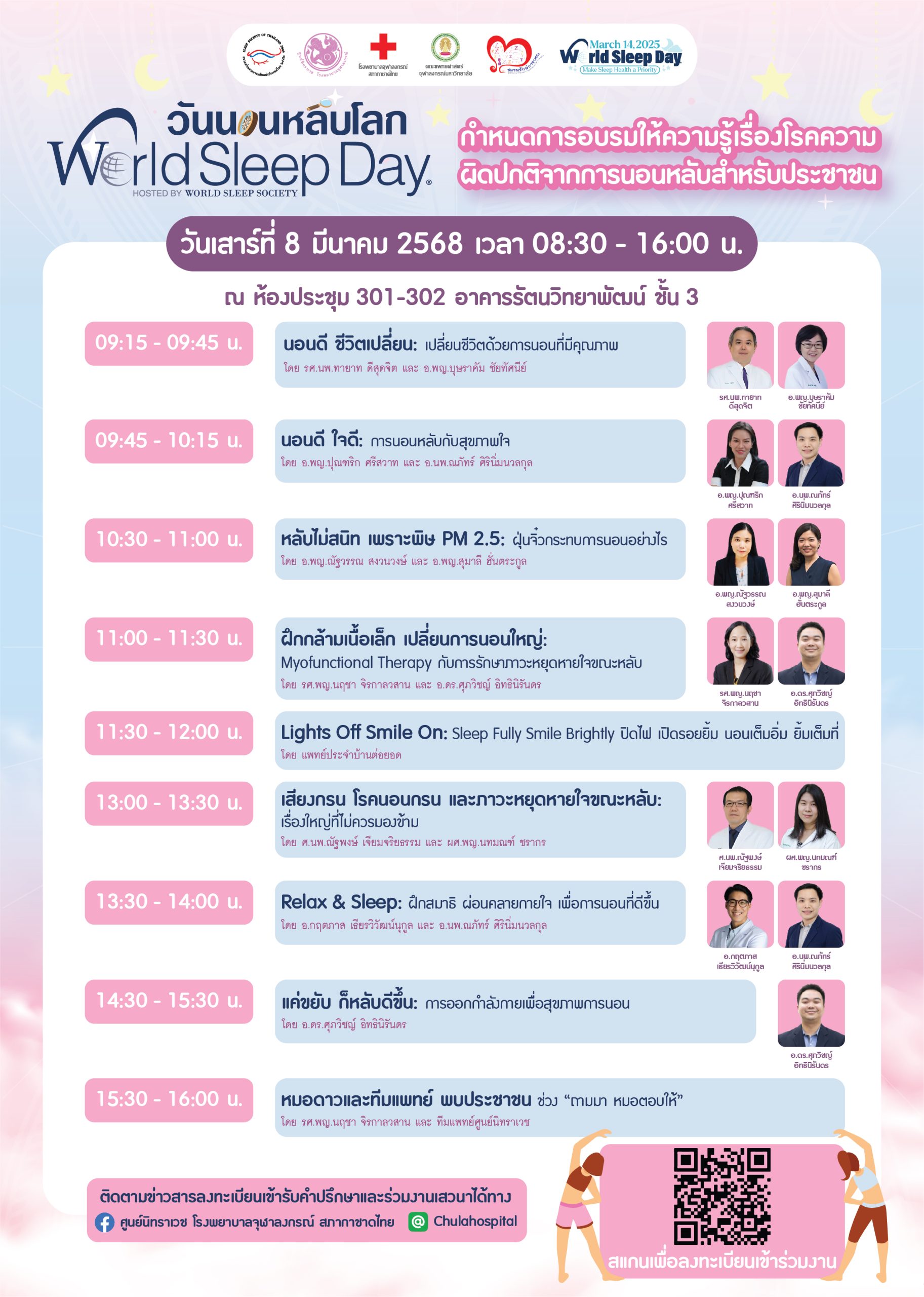📣 ศูนย์นิทราเวช โรงพยาบาลจุฬาลงกรณ์ ขอเชิญเข้าร่วมฟังเสวนาภาคประชาชน เนื่องในวันนอนหลับโลก 2025