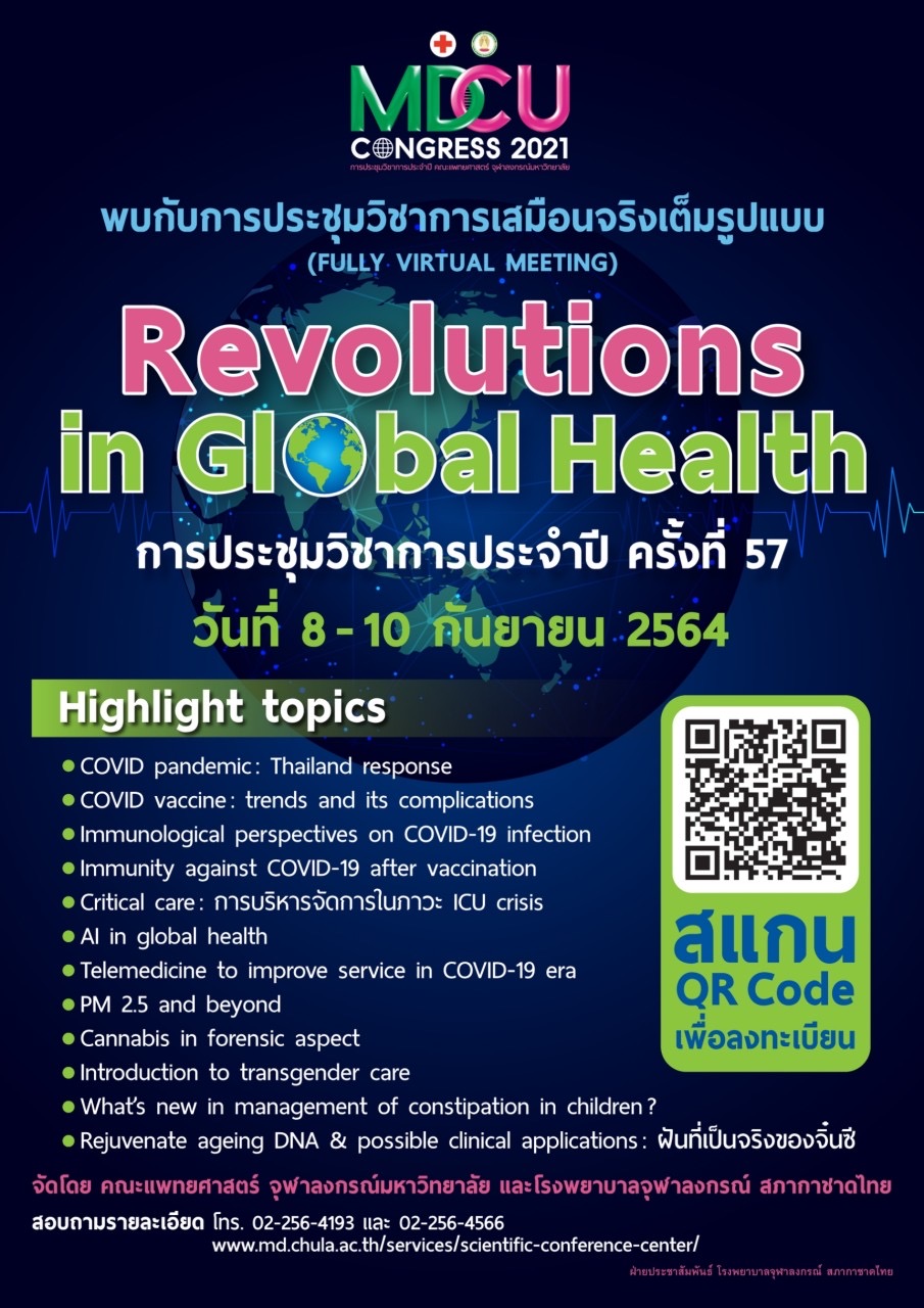 Revolutionsin Global Health การประชุมวิชาการประจำปี ครั้งที่ 57 วันที่ 8-10 กันยายน 2564