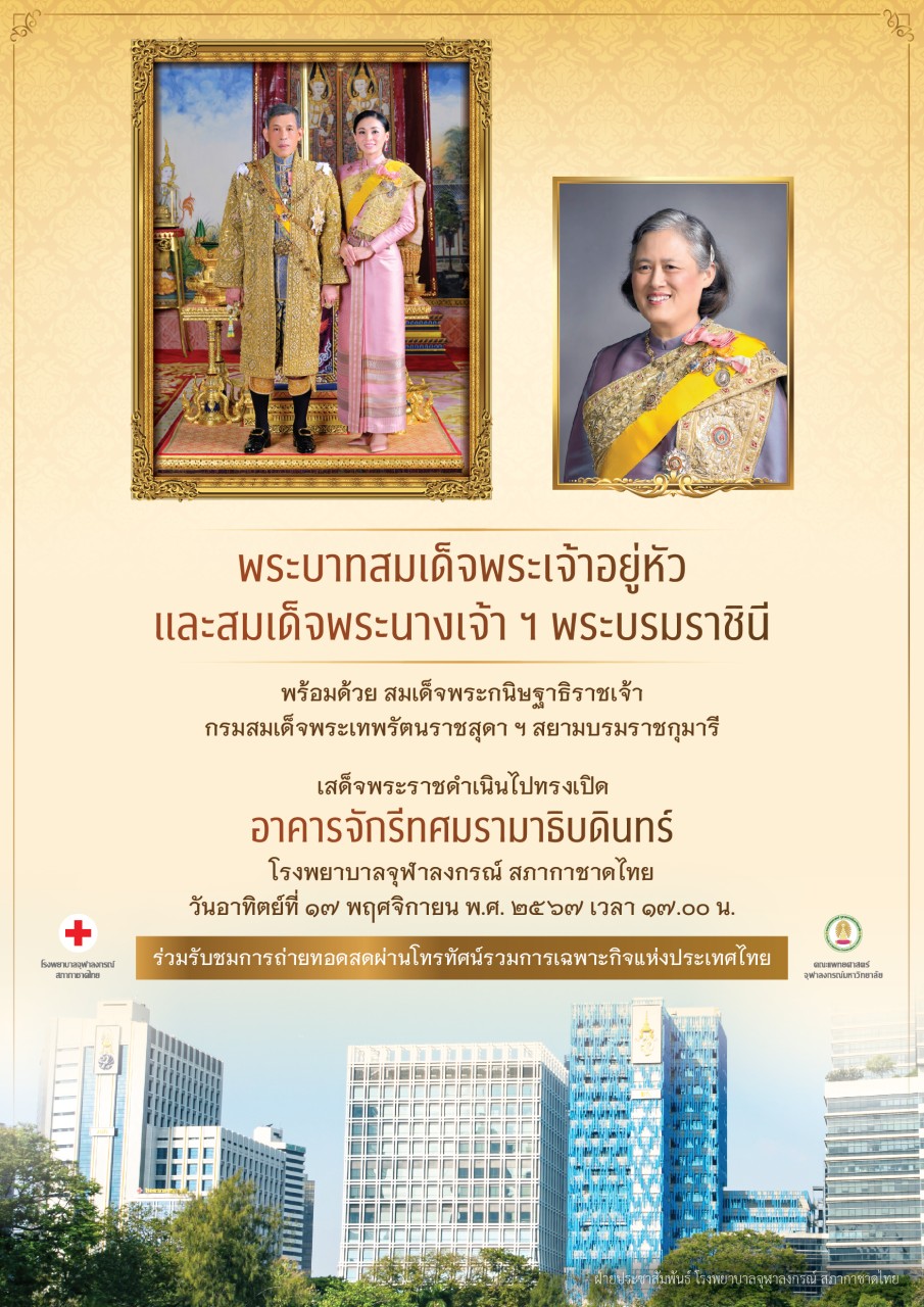 เสด็จพระราชดำเนินไปทรงเปิดอาคารจักรีทศมรามาธิบดินทร์ ณ โรงพยาบาลจุฬาลงกรณ์ สภากาชาดไทย เขตปทุมวัน กรุงเทพมหานคร วันอาทิตย์ที่ ๑๗ พฤศจิกายน พ.ศ. ๒๕๖๗ เวลา ๑๗.๐๐ น.