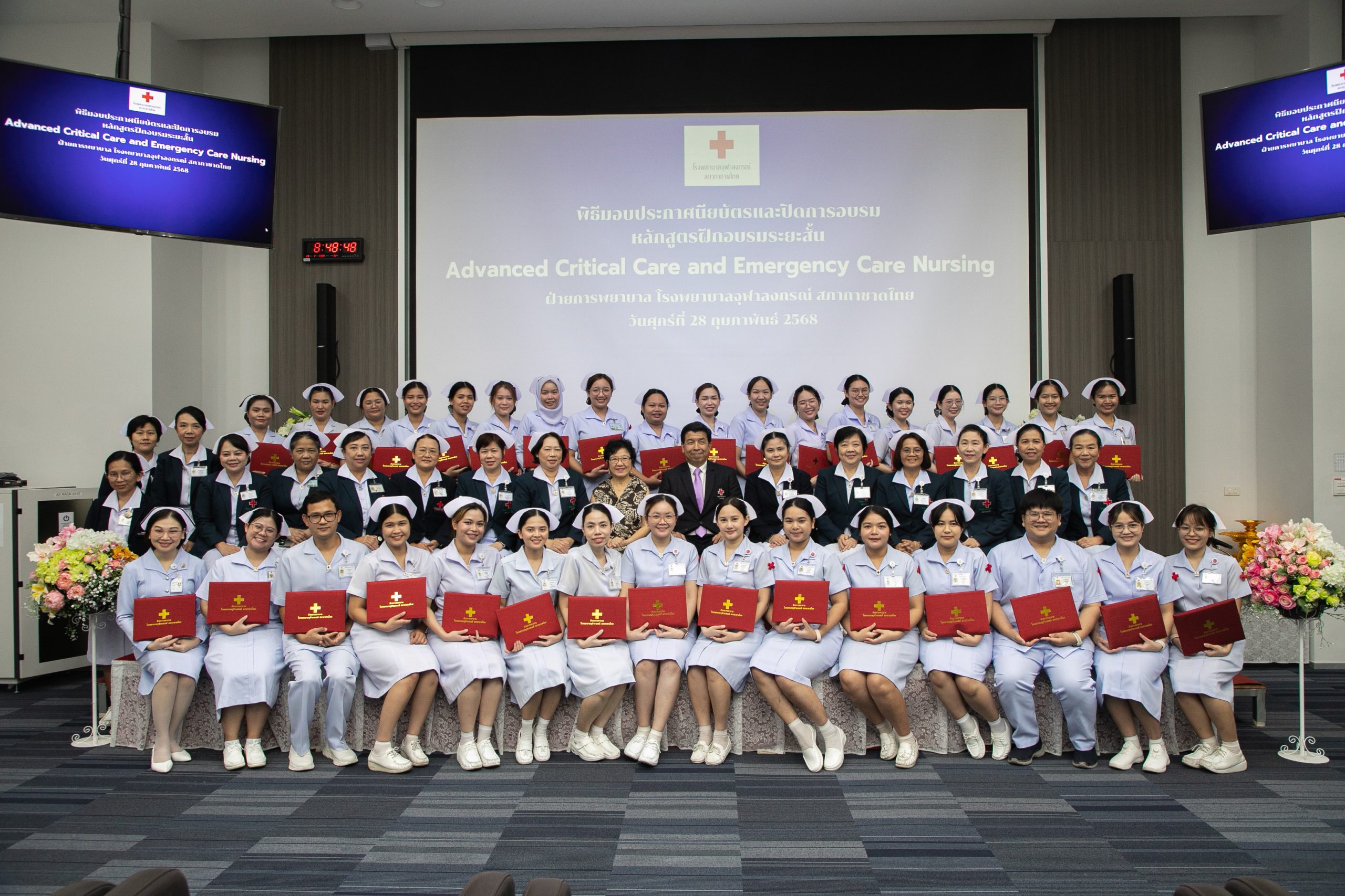 จัดพิธีมอบใบประกาศนียบัตรและปิดการอบรม หลักสูตรฝึกอบรมระยะสั้น "Advanced Critical Care and Emergency Care Nursing" ประจำปี 2568 ให้กับพยาบาลสังกัดฝ่ายการพยาบาล โรงพยาบาลจุฬาลงกรณ์ พยาบาลจากสถาบันภายนอก และพยาบาลจากสาธารณรัฐประชาธิปไตยประชาชนลาวภายใต้ความร่วมมือจาก School of Global Health, Faculty of Medicine Chulalongkorn University
