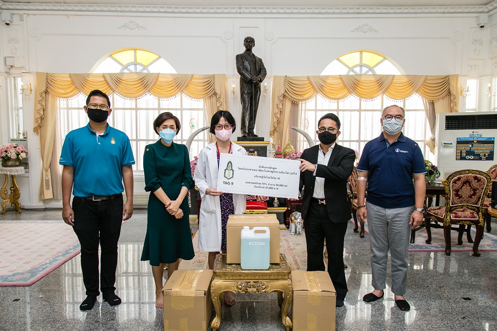 นักศึกษาหลักสูตร ไทยกับประชาคมอาเซียนในเศรฐกิจการเมืองโลก รุ่นที่ 9 (TAG 9) มอบแอลกอฮอล์ 70% และเงินบริจาค เพื่อสู้ภัย Covid-19 โรงพยาบาลจุฬาลงกรณ์