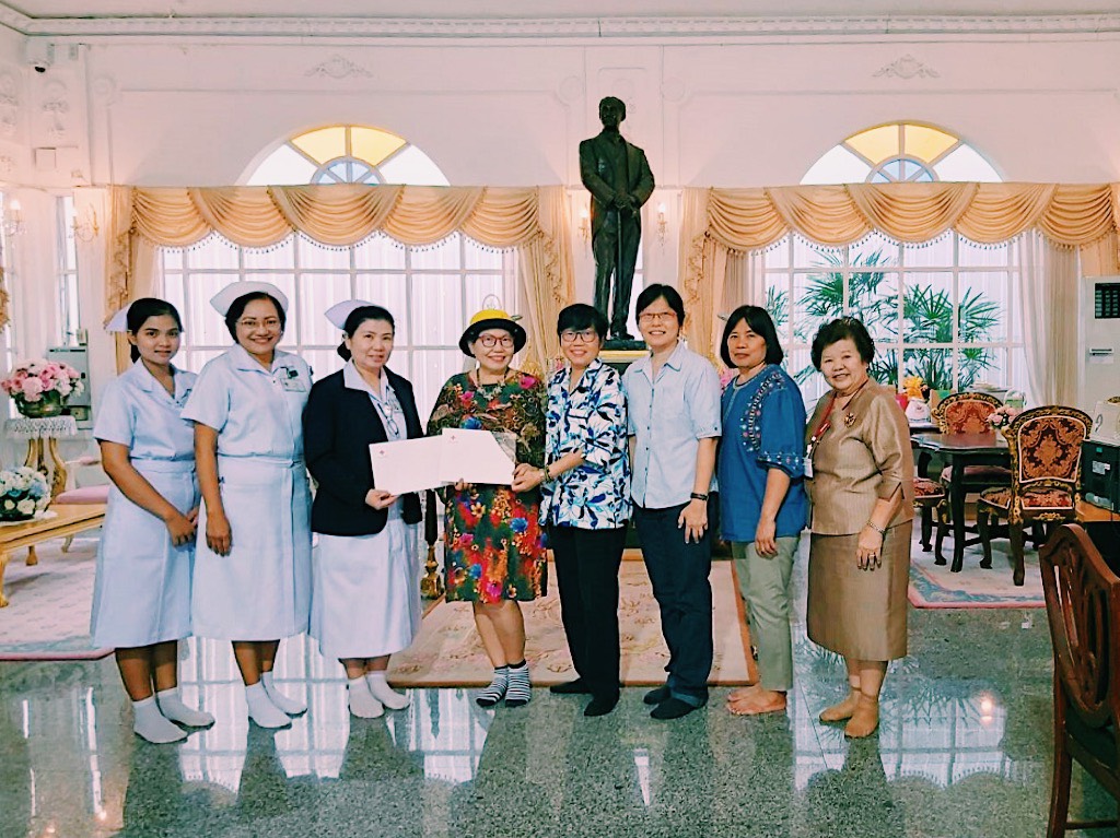 คุณฐาปณีย์ น้ำเพชร พร้อมด้วย คุณสุทธินันท์ น้ำเพชร มอบเงินบริจาคเพื่อบำรุงและจัดหาเครื่องมือเครื่องใช้ทางการแพทย์ ให้หอผู้ป่วย อาคารภูมิสิริมังคลานุสรณ์