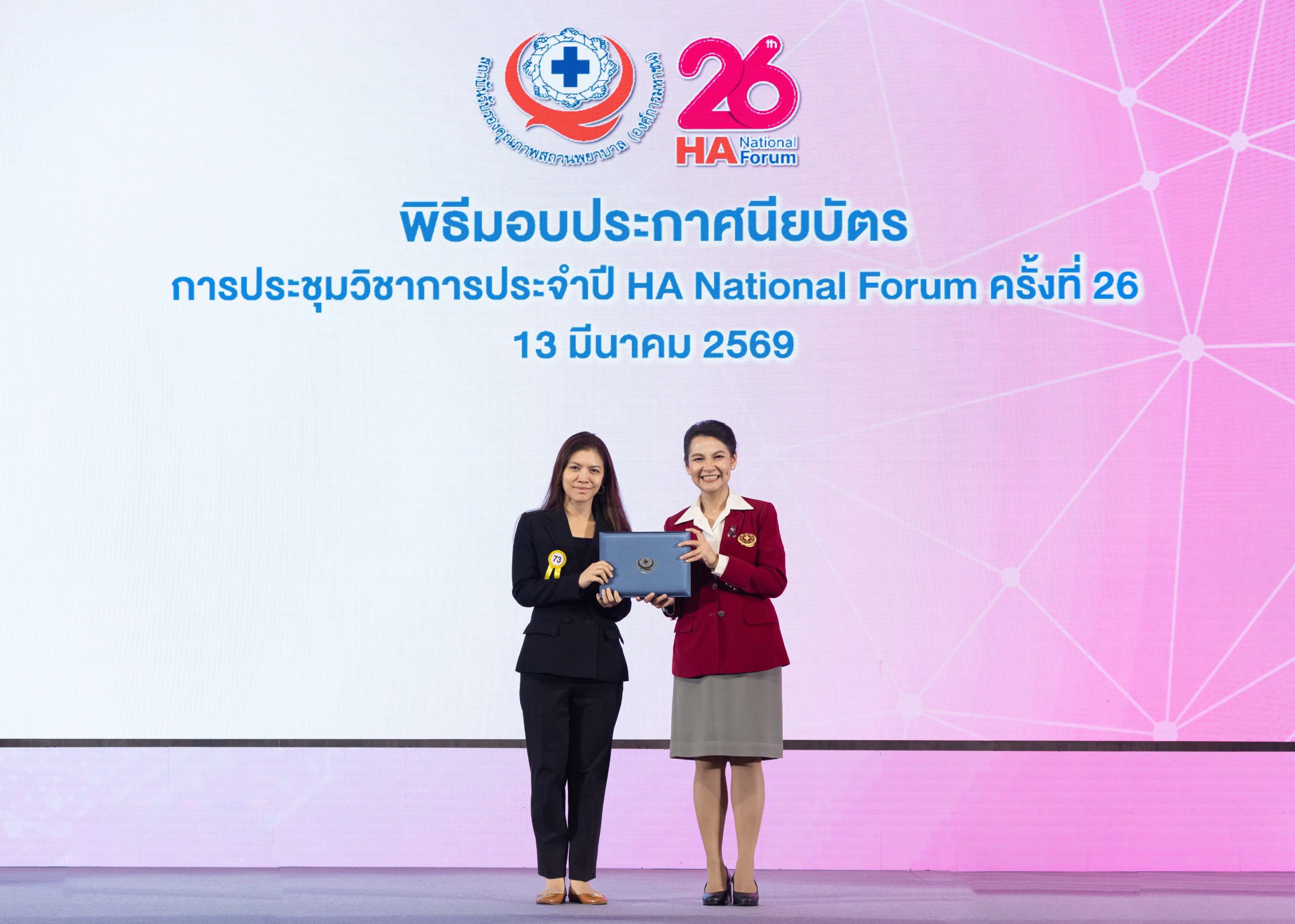 เมื่อวันที่ 13 มีนาคม 2569 โรงพยาบาลจุฬาลงกรณ์ สภากาชาดไทย เข้ารับประกาศนียบัตร “รับรองการพัฒนาคุณภาพตามมาตรฐานเฉพาะโรค/เฉพาะระบบ” (PDSC : Program and Disease Specific Certification) จากสถาบันรับรองคุณภาพสถานพยาบาล (องค์การมหาชน) (สรพ.) ในการประชุมวิชาการประจำปี HA National Forum ครั้งที่ 26 ประจำปี 2569 ณ ห้องแกรนด์ ไดมอนด์ บอลรูม ชั้น 2 อาคารอิมแพ็ค ฟอรั่ม เมืองทองธานี จังหวัดนนทบุรี จำนวน 6 ระบบ และมีผู้แทนเข้ารับดังนี้
