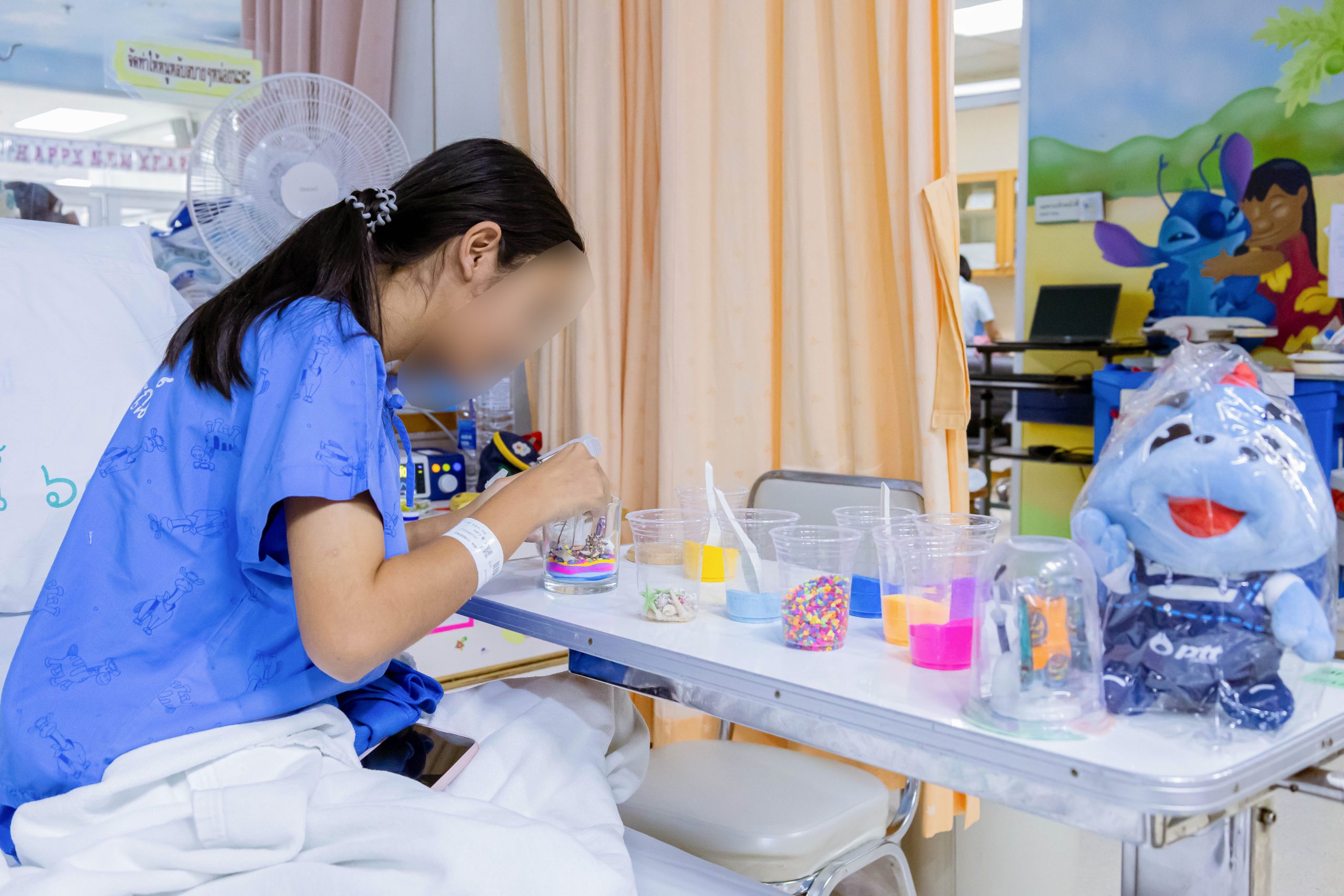 เมื่อวันที่ 22 เมษายน 2568 ศ.พญ.ดารินทร์ ซอโสตถิกุล หัวหน้าโครงการเด็กเจ็บป่วยเรื้อรังและศูนย์คอมพิวเตอร์เพื่อเด็กป่วยฯ โรงพยาบาลจุฬาลงกรณ์ สภากาชาดไทย พร้อมด้วยแพทย์ พยาบาล บุคลากร ให้การต้อนรับ คณะผู้บริหารและเจ้าหน้าที่ จาก บริษัท ปตท.จำกัด (มหาชน) นำโดย คุณเบญญาภรณ์ จารุจินดา ผู้ช่วยกรรมการผู้จัดการใหญ่ และคุณสวรา แขวงโสภา ผู้จัดการฝ่ายพัฒนาธุรกิจใหม่ และบริหารการลงทุน ร่วมจัดกิจกรรมสันทนาการต่างๆ อาทิ เพ้นท์กระถางต้นไม้ เพ้นท์ปูนปั้น ตกแต่งเทียนเจล เป็นต้น โดยกิจกรรมในครั้งนี้จัดขึ้นภายใต้โครงการ Volunteer : Smiles for little heroes นอกจากนี้ได้มอบตุ๊กตาเป็นของที่ระลึกและมอบสิ่งของต่างๆ ให้กับผู้ป่วยเด็กได้มีความสุข และเพื่อเป็นขวัญและกำลังใจ ณ ห้องเรียนเด็กเจ็บป่วยเรื้อรัง ตึก สก. ชั้น 12 โรงพยาบาลจุฬาลงกรณ์ สภากาชาดไทย