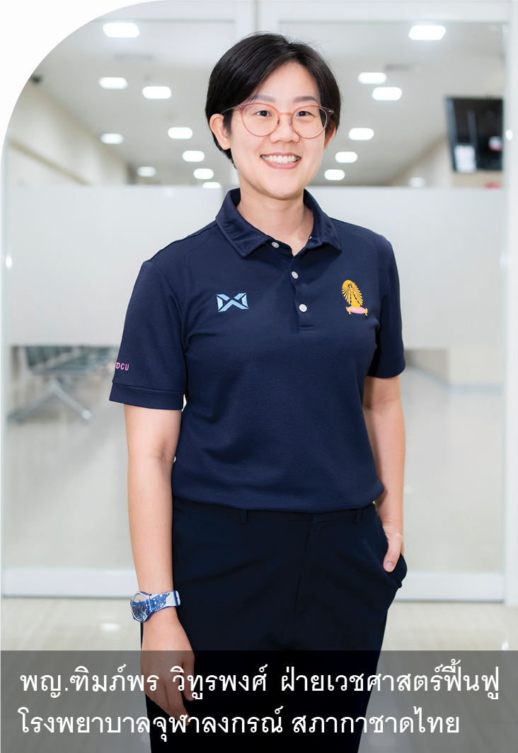 นอกจากการรักษาอย่างต่อเนื่องแล้ว ขั้นตอนฟื้นฟูร่างกายและจิตใจให้กลับมาแข็งแรงก็เป็นสิ่งสำคัญที่ต้องทำควบคู่กันไปด้วย พญ.ฑิมภ์พร วิทูรพงศ์ ฝ่ายเวชศาสตร์ฟื้นฟู โรงพยาบาลจุฬาลงกรณ์ สภากาชาดไทย เปิดเผยว่า นักกีฬาอาชีพซึ่งถูกส่งตัวมารักษาที่คลินิกเวชศาสตร์การกีฬา สำหรับนักกีฬาอีลิท มีทั้งนักกีฬาที่มีอาการบาดเจ็บไม่รุุนแรง และที่มีอาการบาดเจ็บรุนแรงจำเป็นต้องรักษาด้วยการผ่าตัด