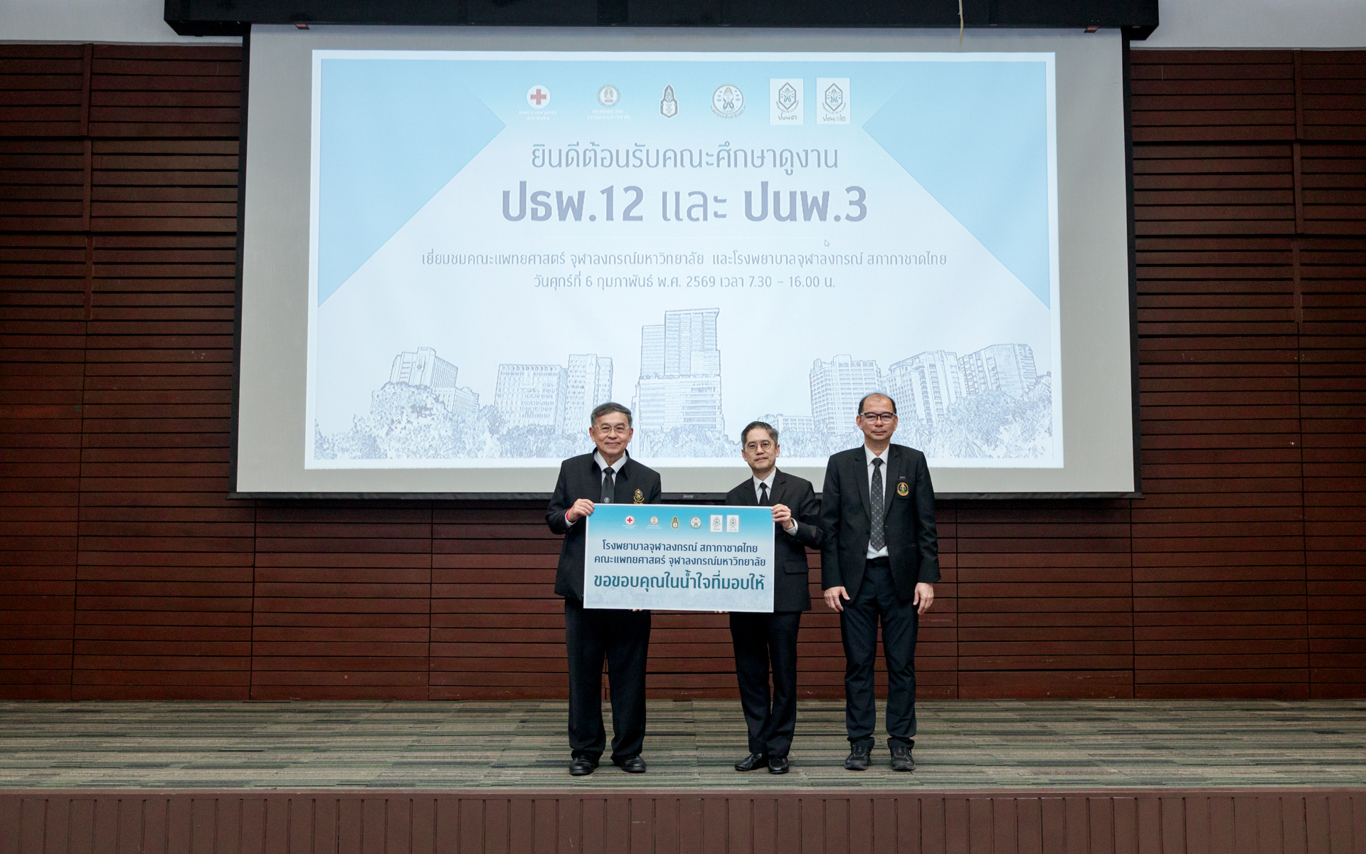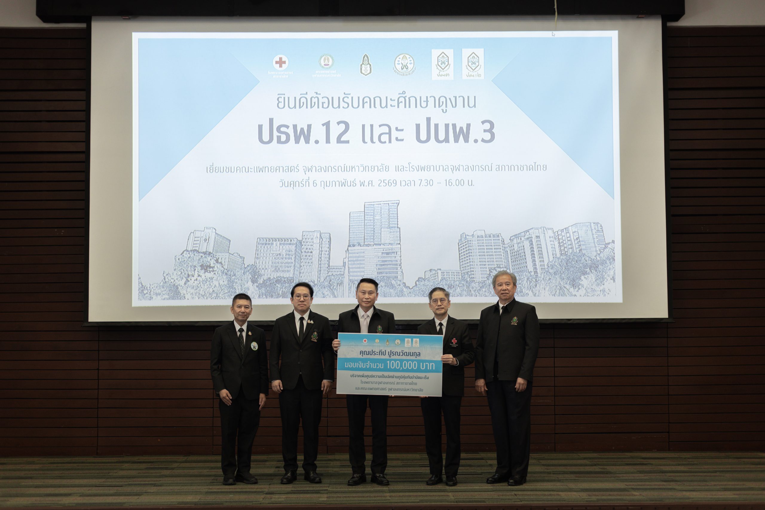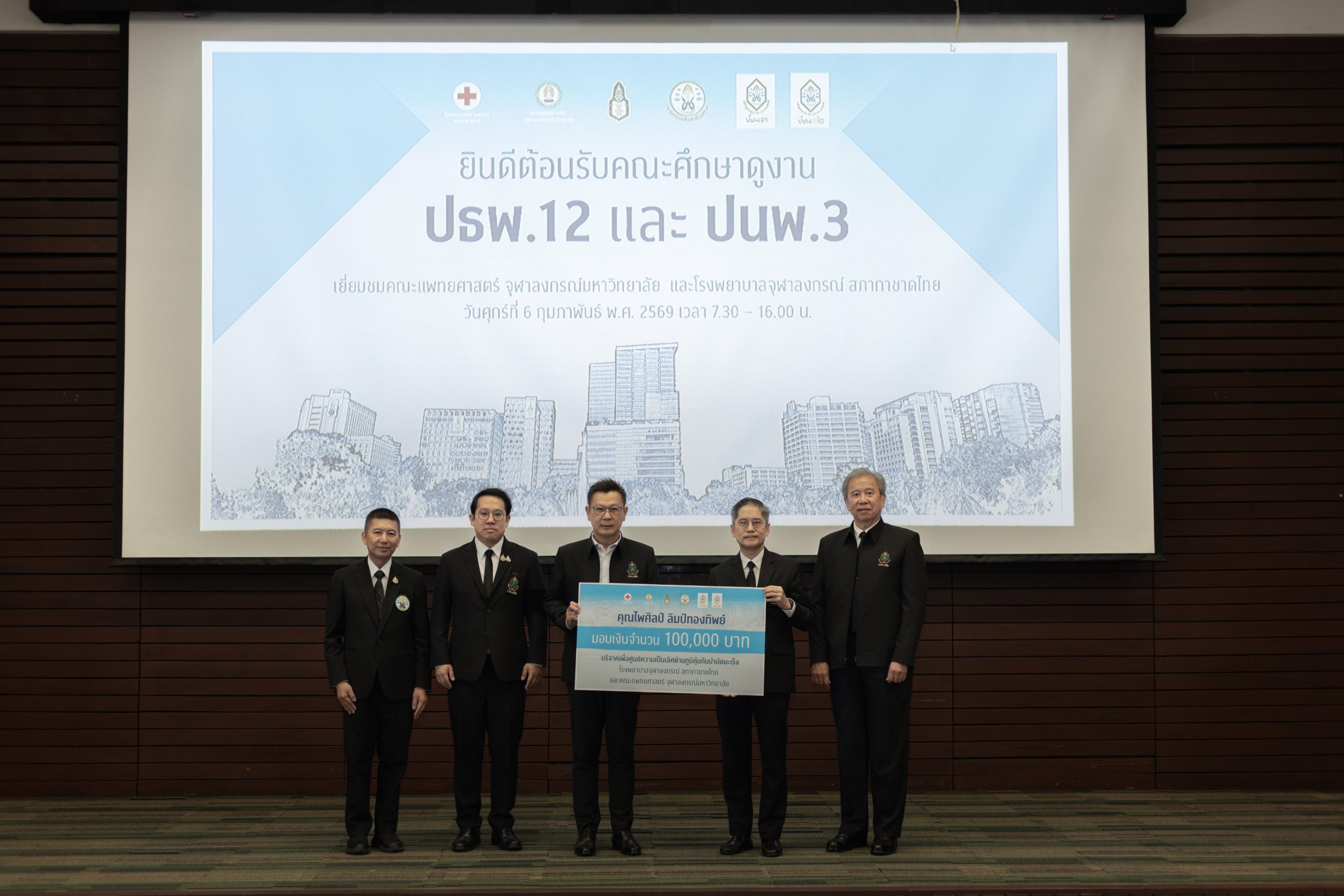 เมื่อวันที่ 6 กุมภาพันธ์ 2569 คณะผู้บริหาร แพทย์ พยาบาล และบุคลากร โรงพยาบาลจุฬาลงกรณ์ สภากาชาดไทย ร่วมกับคณะแพทยศาสตร์ จุฬาลงกรณ์มหาวิทยาลัย นำโดย รศ.ดร.นพ.จิรุตม์ ศรีรัตนบัลล์ ผู้อำนวยการโรงพยาบาลจุฬาลงกรณ์ สภากาชาดไทย และคณบดีคณะแพทยศาสตร์ จุฬาลงกรณ์มหาวิทยาลัย ให้การต้อนรับนักศึกษาหลักสูตรประกาศนียบัตรธรรมาภิบาลทางการแพทย์สำหรับผู้บริหารระดับสูง (ปธพ.) รุ่นที่ 12 และหลักสูตรประกาศนียบัตรผู้นำทางการแพทย์ (ปนพ.) รุ่นที่ 3 รวมกว่า 200 ท่าน ในโอกาสเข้าศึกษาดูงานและเยี่ยมชมพื้นที่ภายในโรงพยาบาลจุฬาลงกรณ์ สภากาชาดไทย