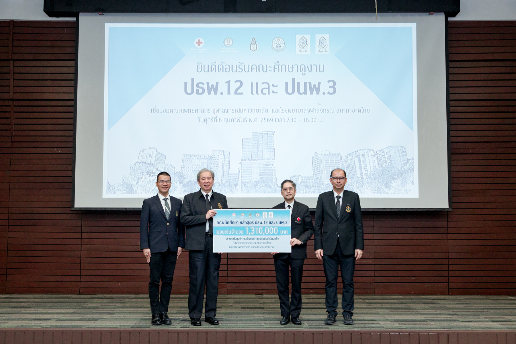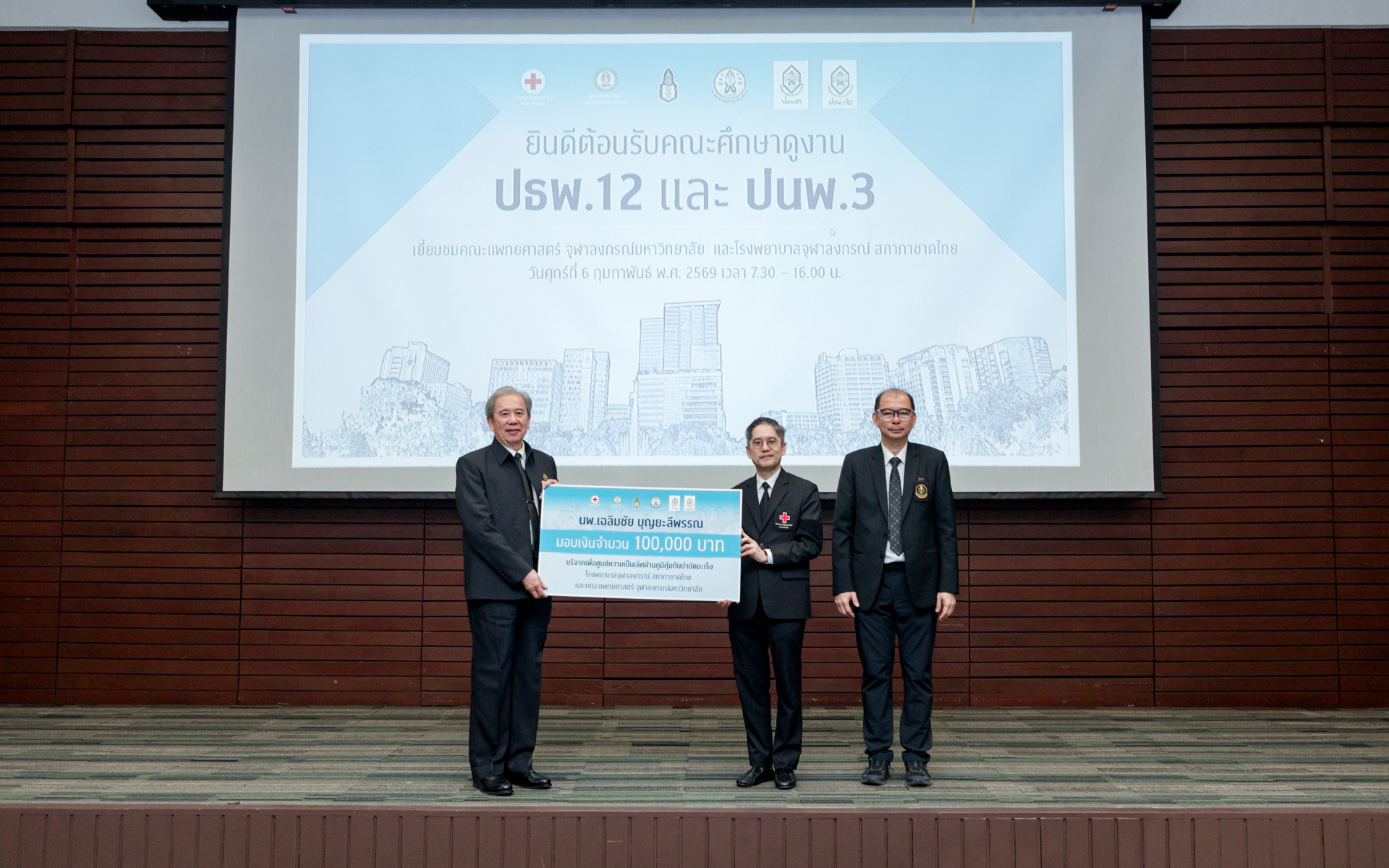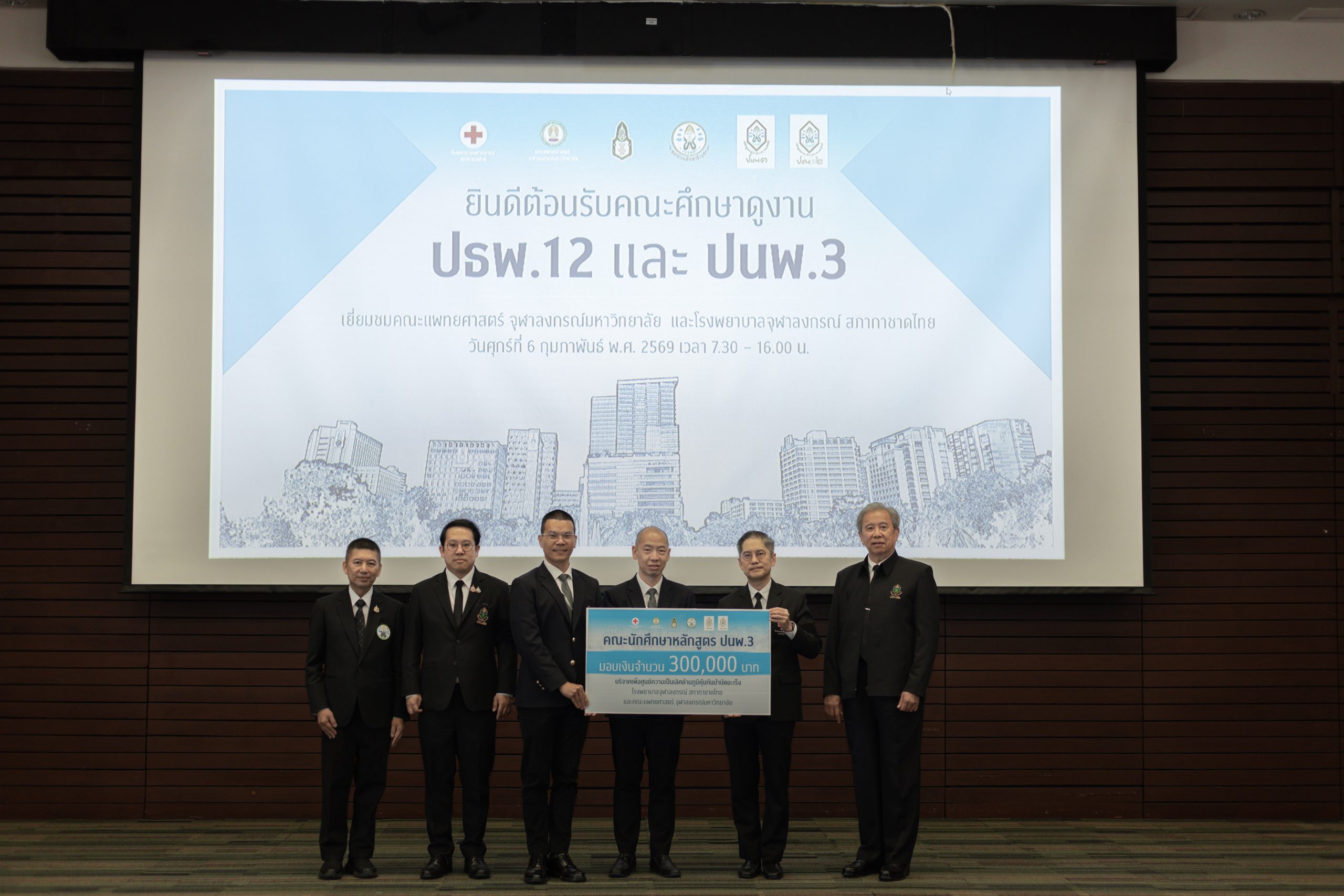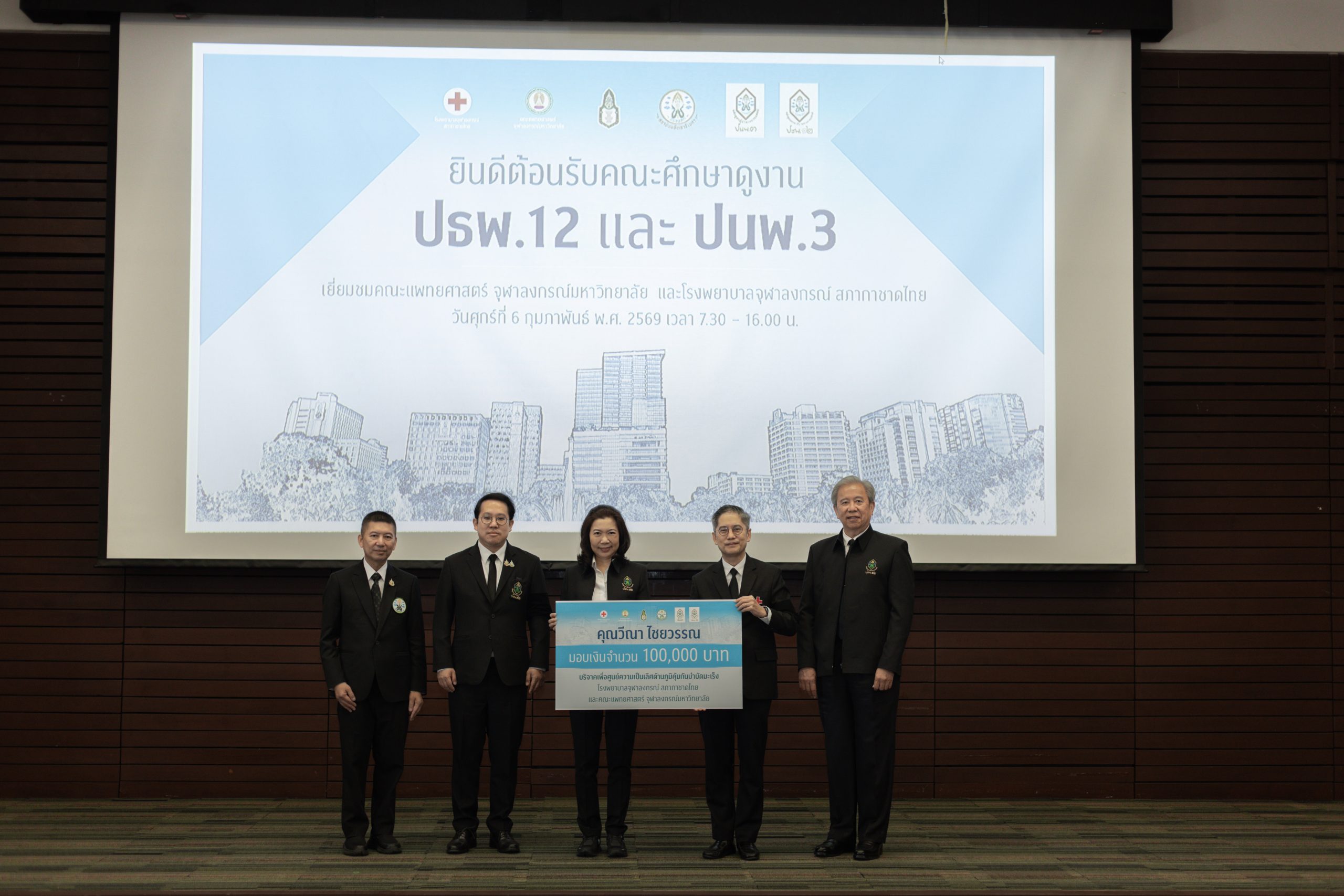 เมื่อวันที่ 6 กุมภาพันธ์ 2569 คณะผู้บริหาร แพทย์ พยาบาล และบุคลากร โรงพยาบาลจุฬาลงกรณ์ สภากาชาดไทย ร่วมกับคณะแพทยศาสตร์ จุฬาลงกรณ์มหาวิทยาลัย นำโดย รศ.ดร.นพ.จิรุตม์ ศรีรัตนบัลล์ ผู้อำนวยการโรงพยาบาลจุฬาลงกรณ์ สภากาชาดไทย และคณบดีคณะแพทยศาสตร์ จุฬาลงกรณ์มหาวิทยาลัย ให้การต้อนรับนักศึกษาหลักสูตรประกาศนียบัตรธรรมาภิบาลทางการแพทย์สำหรับผู้บริหารระดับสูง (ปธพ.) รุ่นที่ 12 และหลักสูตรประกาศนียบัตรผู้นำทางการแพทย์ (ปนพ.) รุ่นที่ 3 รวมกว่า 200 ท่าน ในโอกาสเข้าศึกษาดูงานและเยี่ยมชมพื้นที่ภายในโรงพยาบาลจุฬาลงกรณ์ สภากาชาดไทย