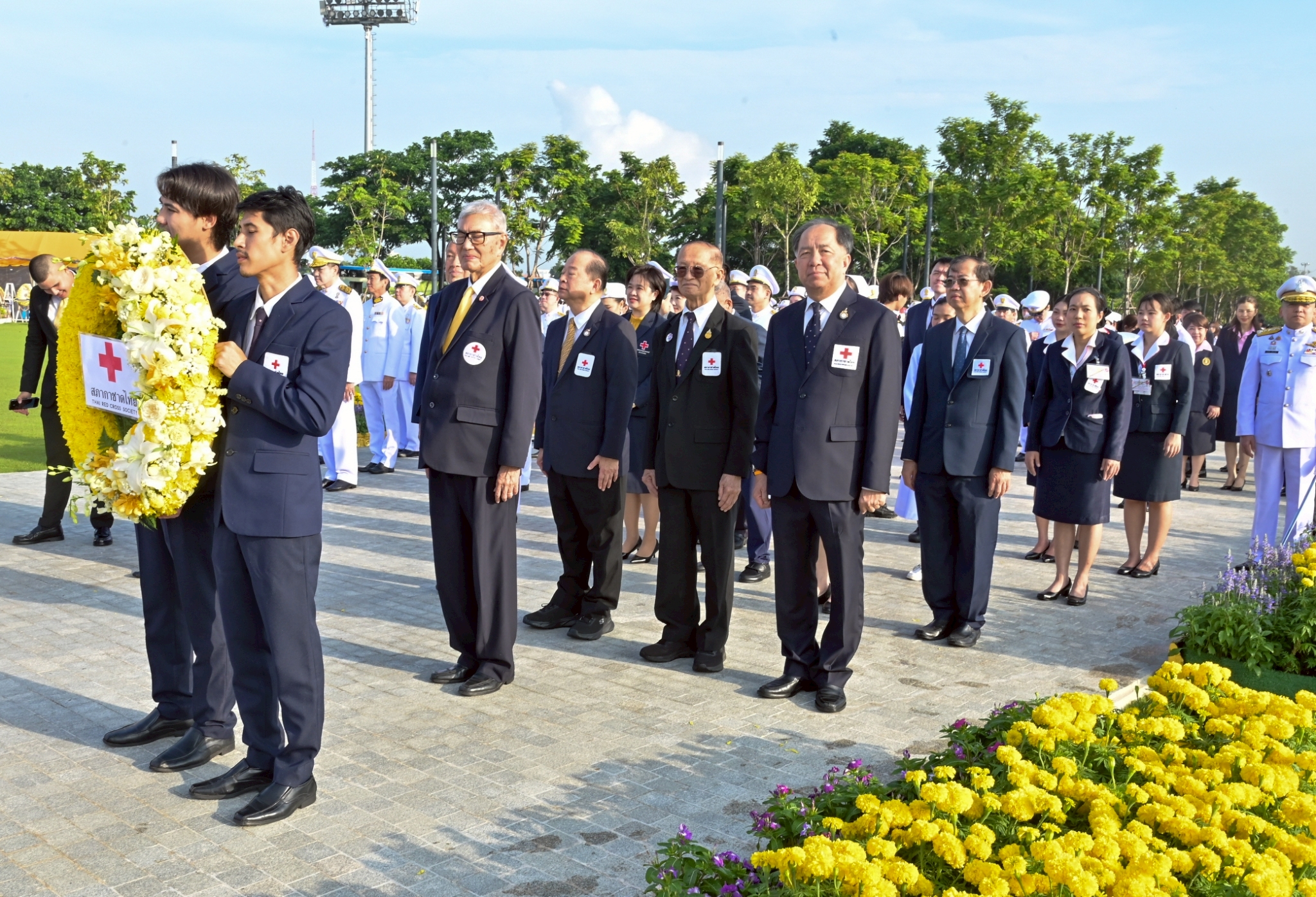 คณะผู้บริหาร แพทย์ พยาบาล บุคลากร โรงพยาบาลจุฬาลงกรณ์ และสภากาชาดไทย วางพวงมาลาถวายบังคม เนื่องในวันนวมินทรมหาราช